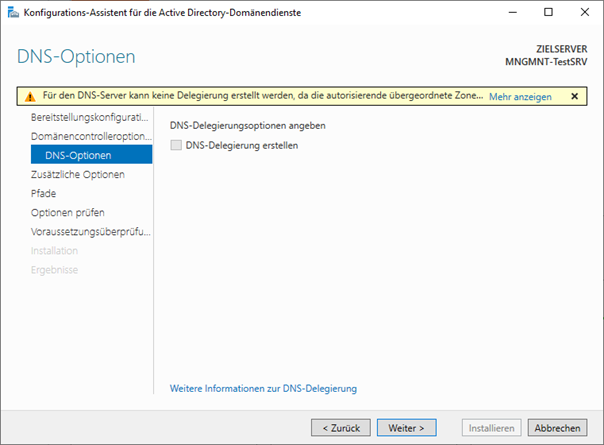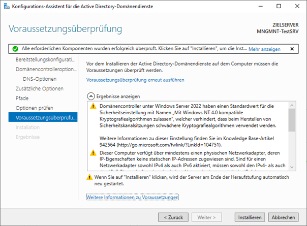 - Nach der Installation der Rolle muss der Server zum Domaincontroller heraufgestuft werden