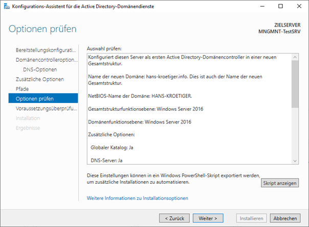 Zur Konfiguration des Domaincontrollers wird die Installierte Rolle „Active Directory-Domänendienste“ installiert sein.